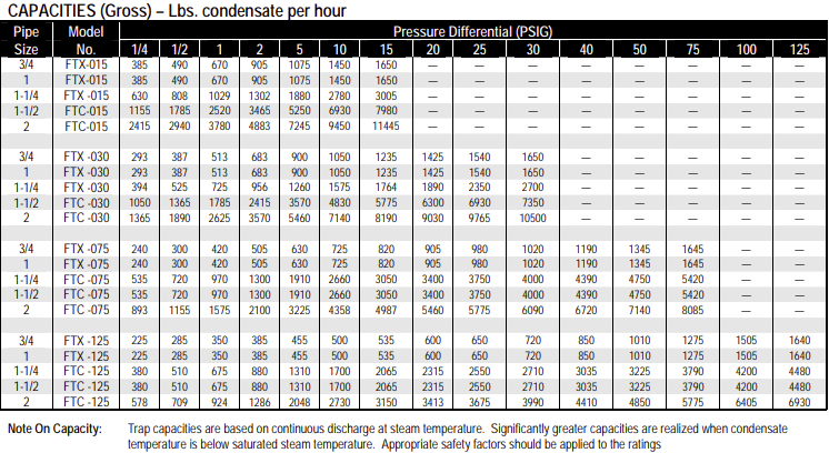 Available in sizes from 3/4″ npt to 2″ npt for differential pressures up to 125 psig saturated steam service with supply pressures limited to 250 psig at temperatures not to exceed 406 deg. F.
